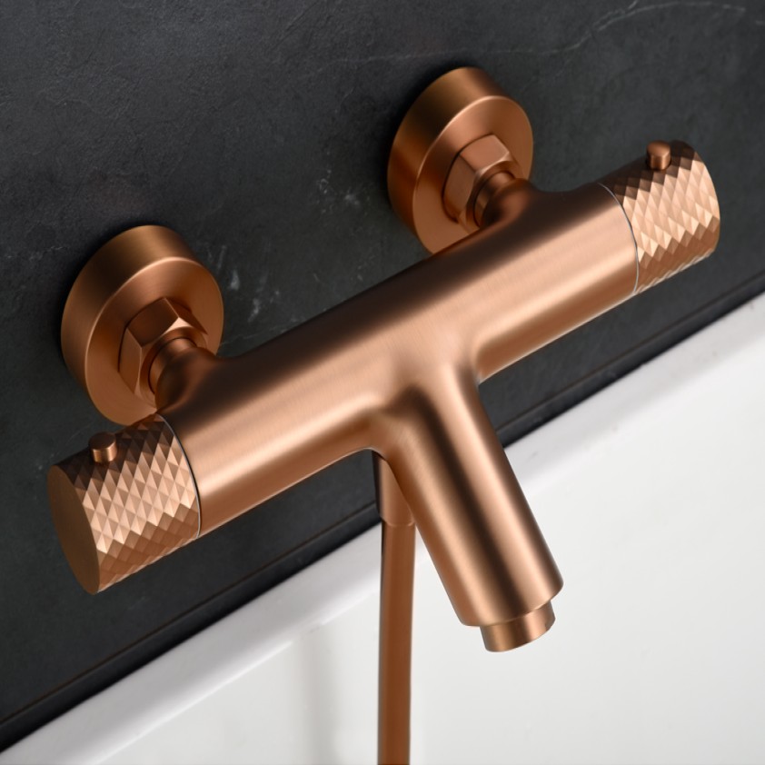 Αναμεικτική Μπαταρία Λουτρού Θερμοστατική PVD Ροζ Χρυσό Ματ/ Χαλκού IMEX GENOVA BTG053-4ORC.