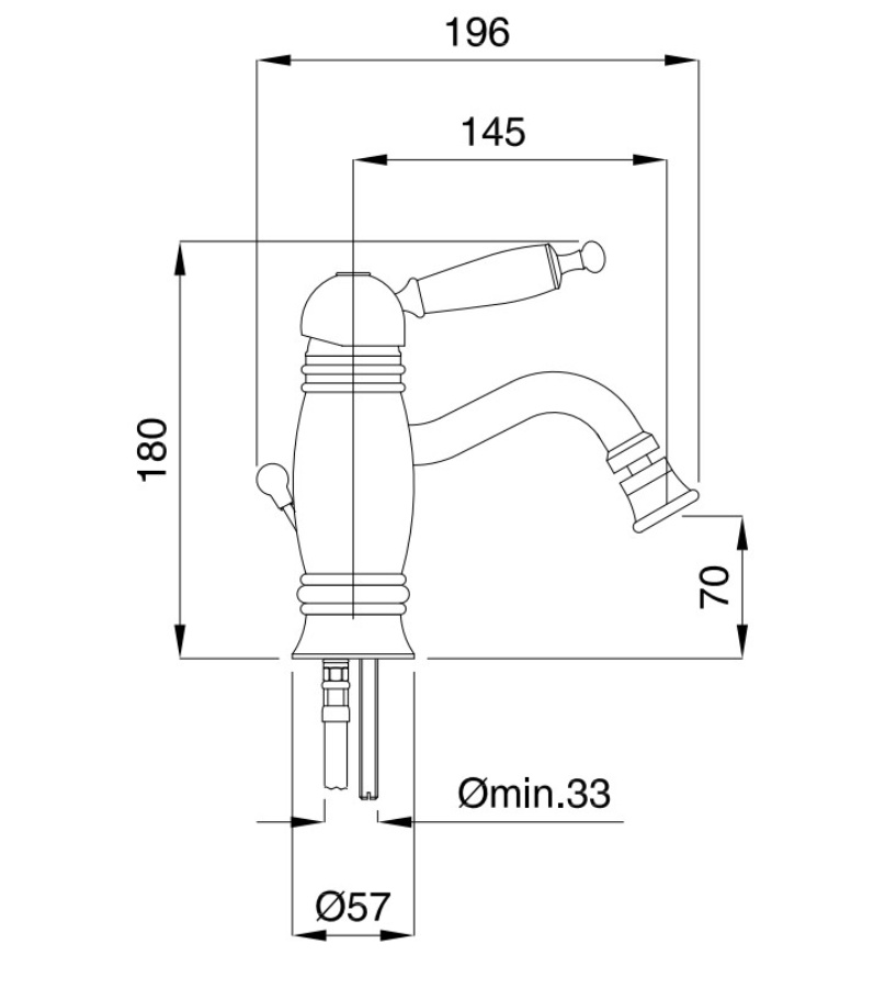 Μπαταρία Μπιντέ Oxford της ιταλικής εταιρίας Bugnatese σε Μπρονζέ φινίρισμα από υλικό κατασκευής ορείχαλκο με πορσελάνινο λευκό χερούλι. Στην συσκευασία περιλαμβάνεται και η αυτόματη βαλβίδα με ντίζα. Έχει Διαστάσεις 18cm (Ολικό Ύψος) και 7.5cm (Ύψος Ροής νερού)