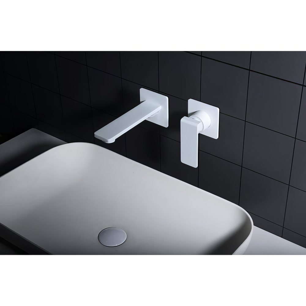 Μια εντοιχιζόμενη αναμεικτική τετράγωνη μπαταρία νιπτήρα 2 οπών με ιδιαίτερο επιβλητικό design, κατεξοχήν μοντέρνου σχεδιασμού, σε Λευκό Ματ φινίρισμα με τετράγωνες δυναμικές φόρμες γεωμετρικής έμπνευσης ιδανική λύση για κάθε επαγγελματικό ή οικιακό μπάνιο. Στην συσκευασία συμπεριλαμβάνεται τα εξωτερικά μέρη (τετράγωνη πλακέτα και τετράγωνο χερούλι μίκτης) καθώς και όλα τα εσωτερικά μέρη που χρειάζονται για να είναι η μπαταρία πλήρως λειτουργική.