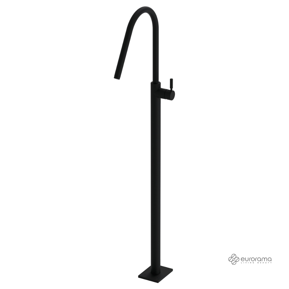 Μια υπερπολυτελής αναμεικτική μπαταρία νιπτήρος δαπέδου με πλαϊνό λεβιέ για την ρύθμιση ζεστού και κρύου νερού σε Μαύρο Ματ φινίρισμα. Διαθέτει περιστρεφόμενο ρουξούνι και έχει Ολικό Ύψος 1245mm με ύψος ροής νερού 1005mm.Κατακσευασμένο από ατόφιο ορείχαλκο του Ιταλικού Οίκου Eurorama.