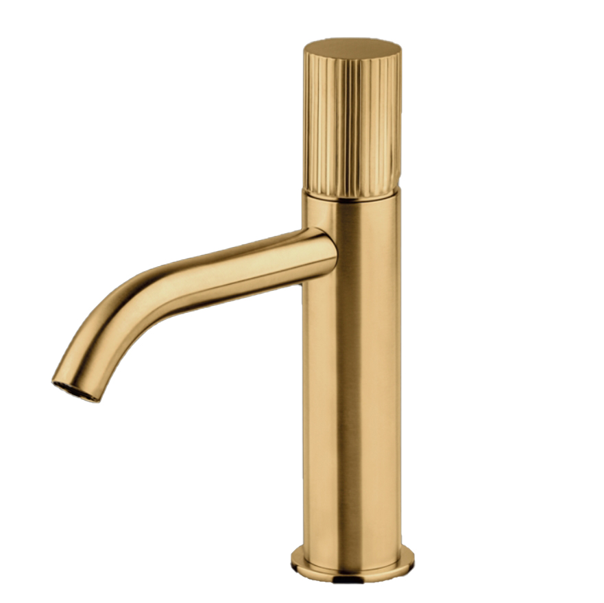 Αποκορυφώστε αισθητικά το μπάνιο σας, με αυτήν την μοναδική μπαταρία νιπτήρα της ιταλικής εταιρίας Eurorama κατασκευασμένη εξ 'ολοκλήρου από ατόφιο Ορείχαλκο με ένα αψεγάδιαστο Χρυσό βουρτσισμένο φινίρισμα. Η σχεδιαστική της λεπτομέρεια και κομψότητα ειδικά στο χερούλι της, σε συνδυασμό με τον απλό και απέριττο σχεδιασμό στον κορμό της αποδίδει μια μοναδική αίσθηση πολυτέλειας σε ολόκληρο το μπάνιο σας. Συμπεριλαμβάνεται και βαλβίδα κλικ κλακ. Έχει Ολικό Ύψος 19cm με Ύψος Ροής Νερού 9.9cm.