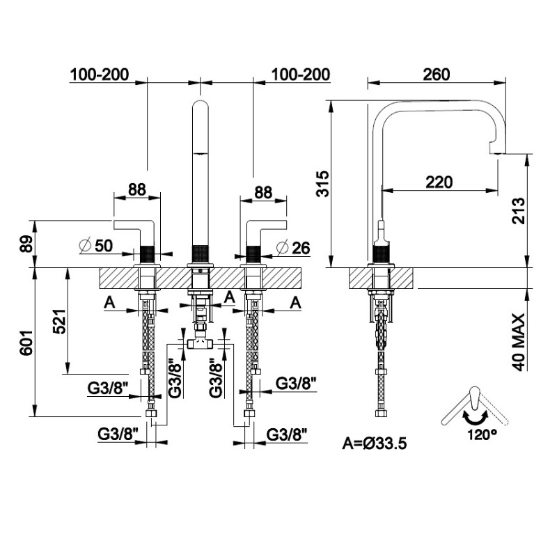 Μια ασυνήθιστη μπαταρία κουζίνας 3 οπών για τον νεροχύτη της κουζίνας σας. Ένα 100% Ιταλικό προϊόν κυριολεκτικά κόσμημα από την πασίγνωστη του είδους Gessi, που όπως το συνηθίζει πρωτοπορεί ''παντρεύοντας'' όπως πάντα το industrial με το μοντέρνο και το διαχρονικό. Διαθέτει 2 μίκτες με φοβερή σαγρέ καινοτομία με Κανελάζ λεπτομέρεια στο κορμό της (ένα για το ζεστό νερό & ένα για το κρύο νερό) και ένα πλακέ περιστρεφόμενο στόμιο κατά 120 μοίρες. Διαθέτει 3 οπές τοποθέτησης Ø33,5 mm, περιστρεφόμενο ρουξούνι 120°, μηχανισμός Ø25mm καθώς και μοναδικό Black Metal Brushed PVD φινίρισμα. Διαθέτει 31.5cm (Ολικό ύψος) και 21.2cm (ύψος ροής νερού).