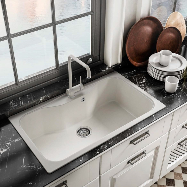 Νεροχύτες Γρανίτη Elleci σειρά Fox 360 Λευκό Bianco G68 Granitek (86.3x50.3cm)