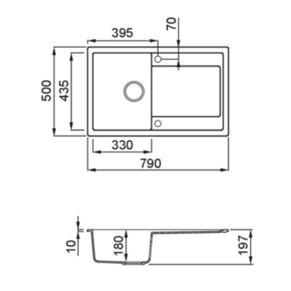 Ένας πολύ πρακτικός νεροχύτης όπου το κλασσικό συναντά το μοντέρνο μέσα από διακριτικά βασικά σχήματα και γραμμές. Η αισθητική εστιάζει στην ουσία, στη συγκεκριμένη λειτουργικότητα που είναι σημαντική στην καθημερινή χρήση. Ο νεροχύτης έχει ολικές εξωτερικές διαστάσεις 79cm (πλάτος) x 50cm (μήκος). Διαθέτει 1 γούρνα με διαστάσεις 33cm (πλάτος) x 43.5cm (μήκος) x 18cm (βάθος) καθώς και 1 πάγκο αποστράγγισης. Στην συσκευασία περιλαμβάνεται σιφόν εξοικονόμησης χώρου, βαλβίδα καθώς και στρογγυλή υπερχείλιση και εξαρτήματα στερέωσης.