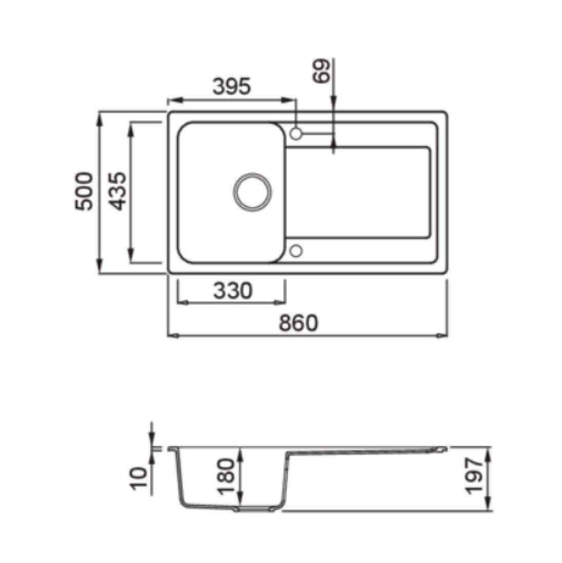 Ένας πολύ πρακτικός νεροχύτης όπου το κλασσικό συναντά το μοντέρνο μέσα από διακριτικά βασικά σχήματα και γραμμές. Η αισθητική εστιάζει στην ουσία, στη συγκεκριμένη λειτουργικότητα που είναι σημαντική στην καθημερινή χρήση. Ο νεροχύτης έχει ολικές εξωτερικές διαστάσεις 86cm (πλάτος) x 50cm (μήκος). Διαθέτει 1 γούρνα με διαστάσεις 33cm (πλάτος) x 43.5cm (μήκος) x 18cm (βάθος) καθώς και 1 πάγκο αποστράγγισης. Στην συσκευασία περιλαμβάνεται σιφόν εξοικονόμησης χώρου, βαλβίδα καθώς και στρογγυλή υπερχείλιση και εξαρτήματα στερέωσης.