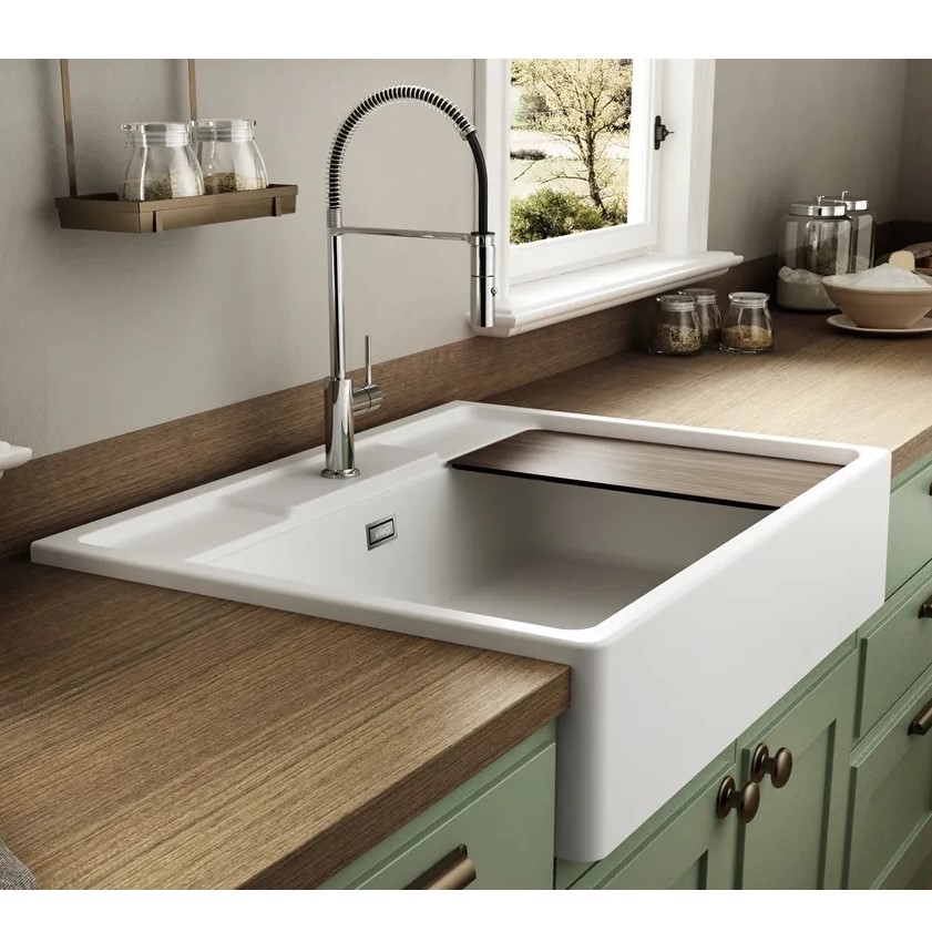 Μια σύγχρονη έκδοση επικαθήμενου νεροχύτη η σειρά Spazio διαθέτει γεωμετρικές γραμμές που καθιστούν δυνατή την πλήρη εκμετάλλευση του όγκου του νεροχύτη με έξυπνο και εξαιρετικά ορθολογικό τρόπο. Η εσωτερική εσοχή η οποία επιτρέπει στα αξεσουάρ να γλιστρούν, παρέχει μια εξαιρετικά άνετη εμπειρία χρήσης κατά την διάρκεια των εργασιών προετοιμασίας και καθαρισμού. Είναι ιδανική περίπτωση για κάθε μοντέρνα κουζίνα και διατίθεται σε Λευκό φινίρισμα ενώ συνοδεύεται από βαλβίδες και σιφόνια. Έχει εξωτερικές διαστάσεις 90cm (πλάτος) x 63.5cm (μήκος) και εσωτερικές διαστάσεις γούρνας 82x44cm το βάθος του νεροχύτη είναι 20cm