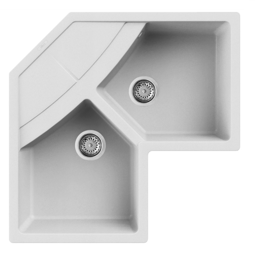 Νεροχύτες Γρανίτη Elleci σειρά Unico Corner Λευκό Bianco G68 Granitek (83x83cm)