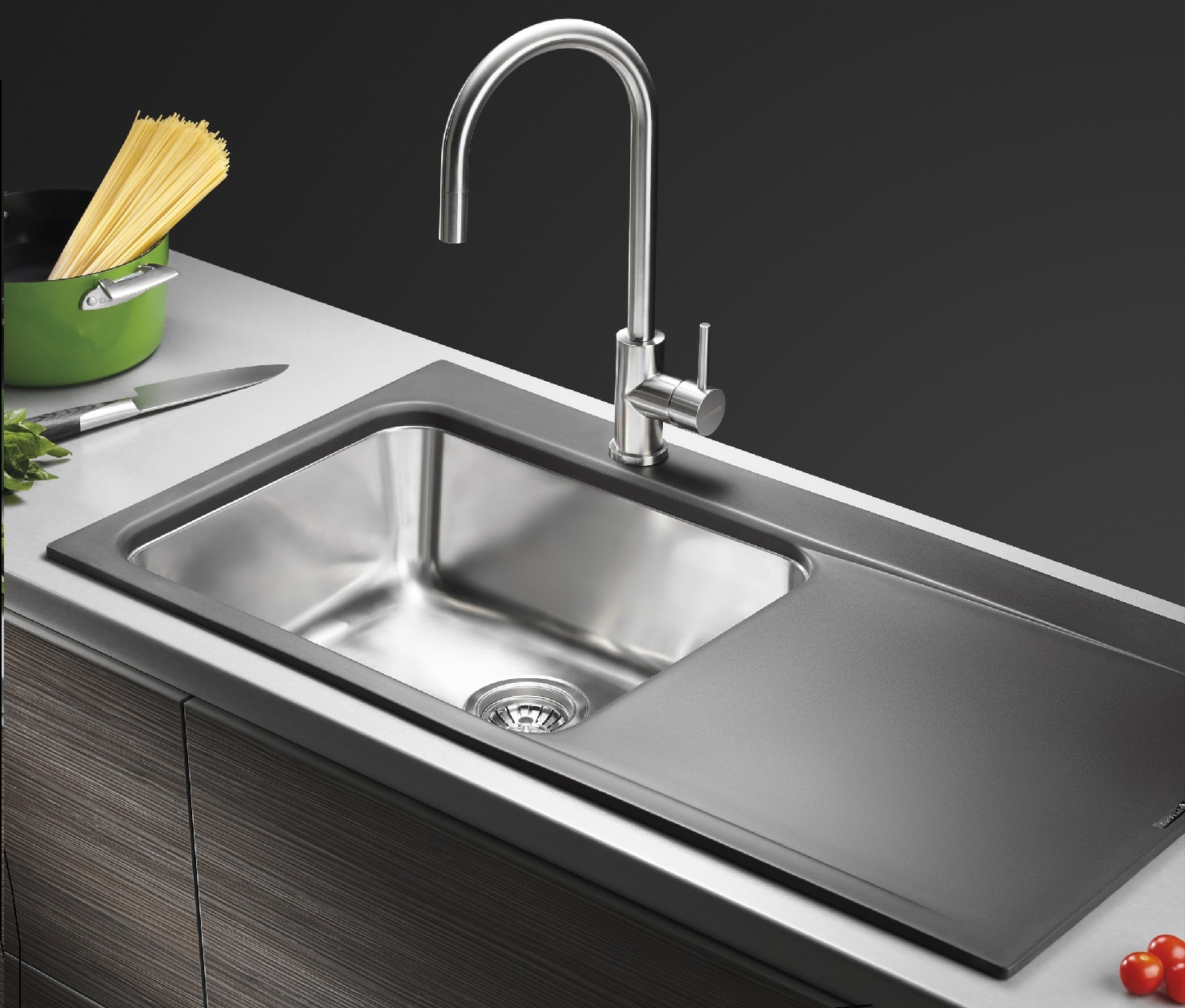 Τετράγωνος Νεροχύτης (Αριστερός) για την κουζίνα μήκους 100.00cm και πλάτους 52.00cm σε χρώμα Carbon(μαύρο).Κατασκευασμένος από κρυστάλλους φυσικού γρανίτη (silica) και ρητίνες.H εσωτερική Διάσταση της γούρνας είναι 50cm x 40cm x 20cm.Διαθέτει 1 ανοξείδωτη γούρνα,1 βαλβίδα με στρογγυλή υπερχείλιση Φ.92,Σίφον εξοικονόμησης χώρου για 1 γούρνα καθώς και Ερμάριο** μήκους 60cm.Η τοποθέτηση του Νεροχύτη είναι Ένθετη(η περίμετρος του νεροχύτη μετά την εγκατάσταση εμφανίζεται πάνω στην επιφάνεια του πάγκου).
