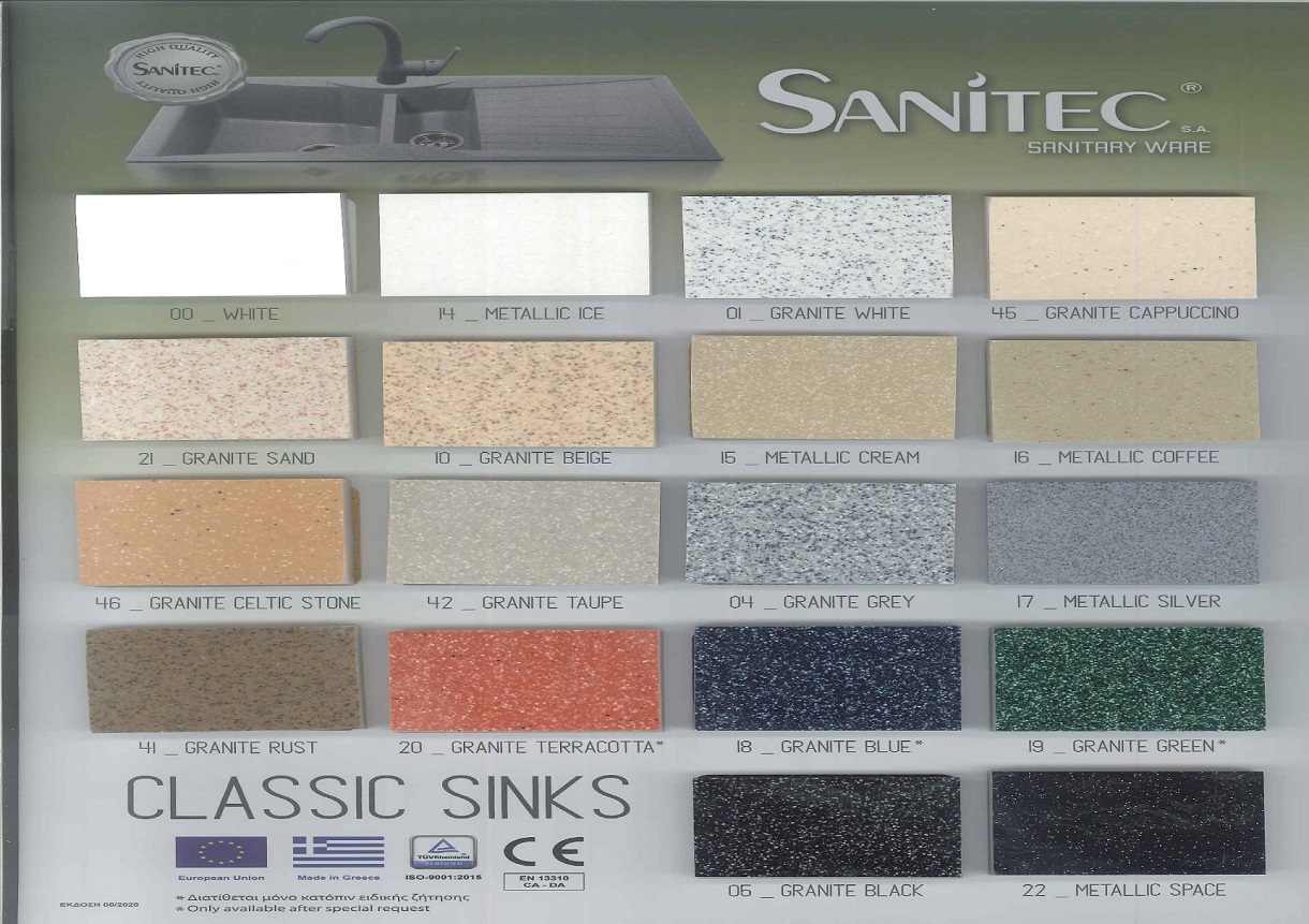 Νεροχύτες Γρανίτη Συνθετικοί Sanitec 301 σε 17 αποχρώσεις (96x50cm)