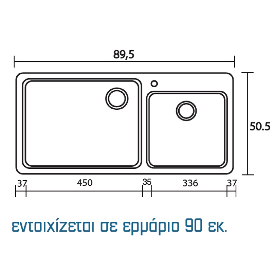Συνθετικός Νεροχύτης με   2 γούρνες (μεγάλη γούρνα 45cm και μικρή γούρνα 33.6cm)