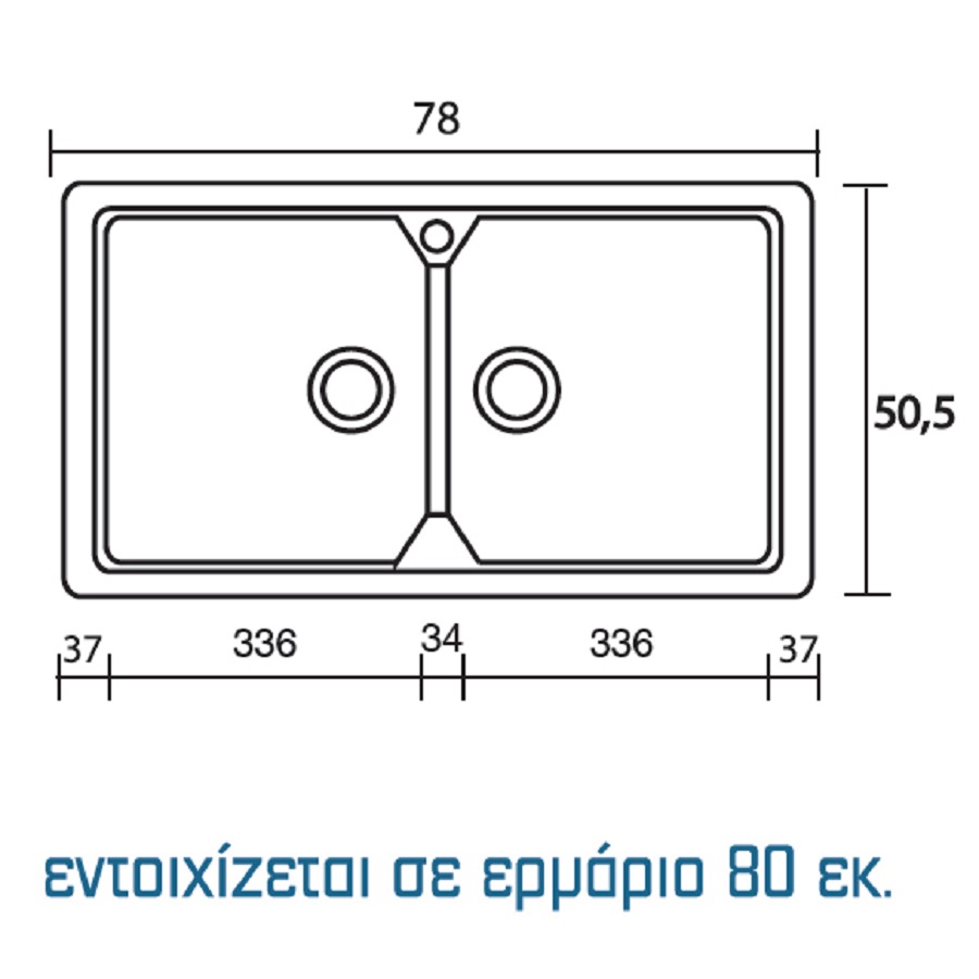 Συνθετικός Νεροχύτης με 2 γούρνες (μήκος γουρνών 33.6cm)