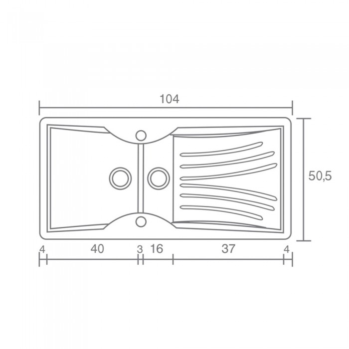 Συνθετικός Νεροχύτης με 2 γούρνες (μεγάλη γούρνα 40cm και μικρή γούρνα 16cm) και 1 ποδιά αποστράγγισης