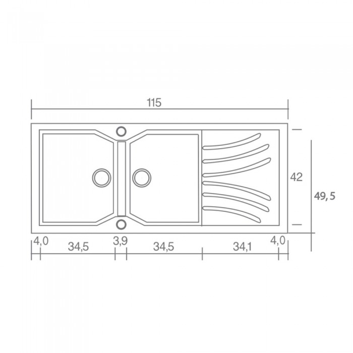 Συνθετικός Νεροχύτης με 2 γούρνες (2 ίδιες γούρνες 34.5cm) και 1 ποδιά αποστράγγισης