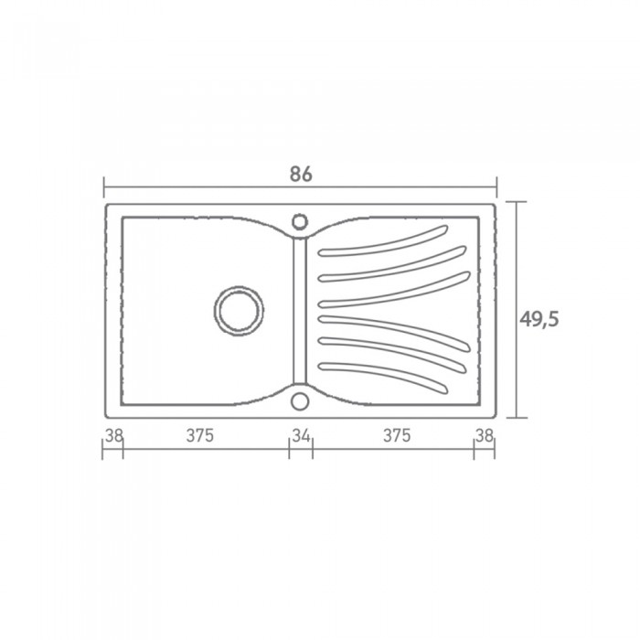 Διαστάσεις : 86 x 50 cm με Βάθος Γούρνας : 22 cm