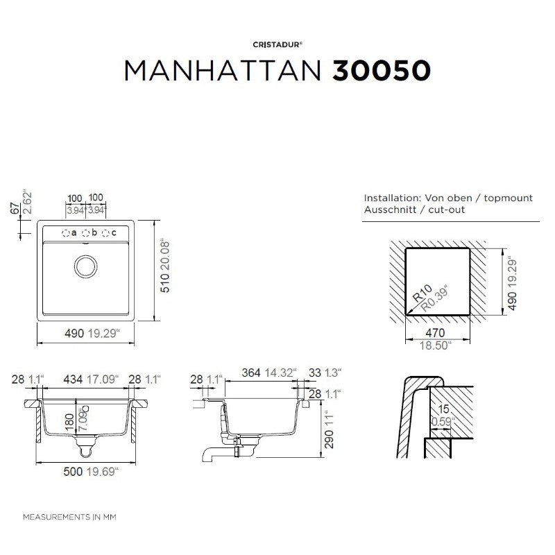 Το all-time-classic CRISTALITE® με το ελαφρά πετρώδες φινίρισμα, είναι ανθεκτικό σε χτυπήματα και σε υψηλές θερμοκρασίες, αντιβακτηριακό και εύκολο στον καθαρισμό.