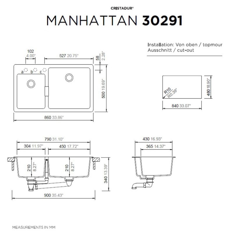 Νεροχύτες Schock Cristalite Manhattan 30291-1511 Everest (86x50cm)