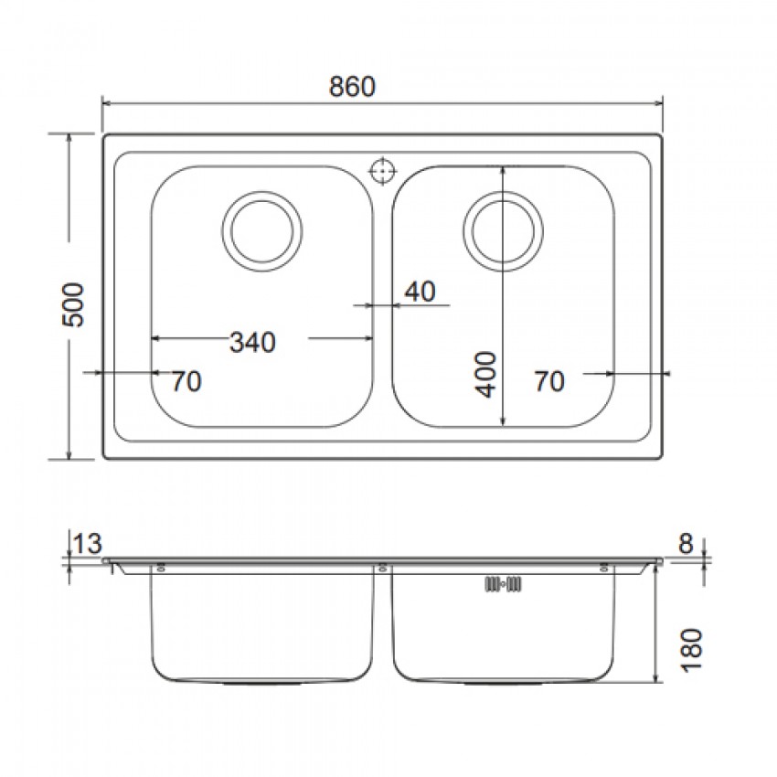 Ανοξείδωτος Ένθετος νεροχύτης με 2 γούρνες του κατασκευαστή Apell με Βάθος 18cm και Διάσταση Γούρνας 34x40cm. Ερμάριο 80cm.Κατασκευασμένος εξ 'ολοκλήρου από Ανοξείδωτο χάλυβας 18/10 και φινίρισμα Σαγρέ. Συμπεριλαμβάνονται βαλβίδες, σωληνώσεις & λιποσυλλέκτης