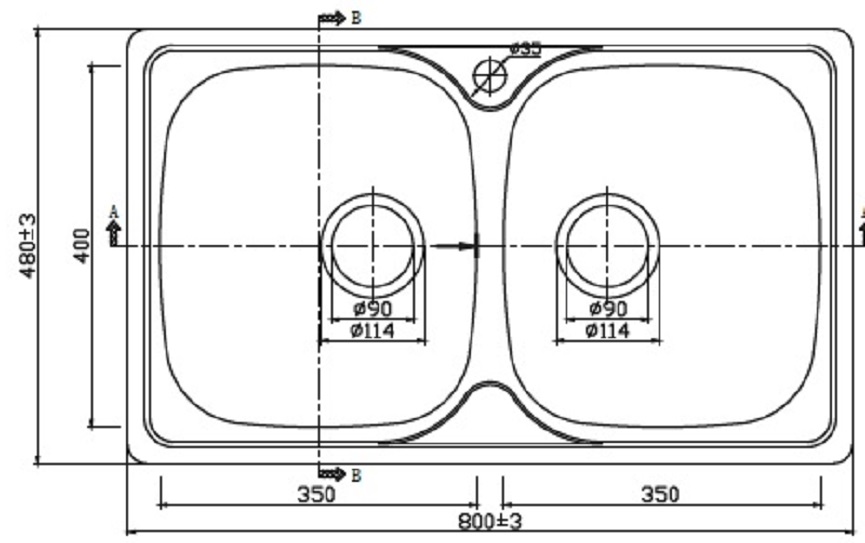 Ένας μοντέρνος νεροχύτης ένθετος για την κουζίνα σας, κατασκευασμένος εξ ολοκλήρου από ανοξείδωτο αντιμαγνητικό ατσάλι 304, που χαρακτηρίζεται από υψηλή ποιότητα κατασκευής ενώ διαθέτει απλές καθαρές σχεδιαστικές γραμμές οι οποίες προσδίδουν κομψότητα και διαχρονικότητα. Έχει εξωτερικές διαστάσεις 80x48cm (με περίμετρο οπής 79χ47cm) ενώ διαθέτει 2 γούρνες με πλάτος 35cm,μήκος 40cm και με αντίστοιχο βάθος 15.50cm.Διατίθεται σε Ανοξείδωτο Σατινέ ματ φινίρισμα. Το πάχος ελάσματος του Νεροχύτη είναι 0.6mm