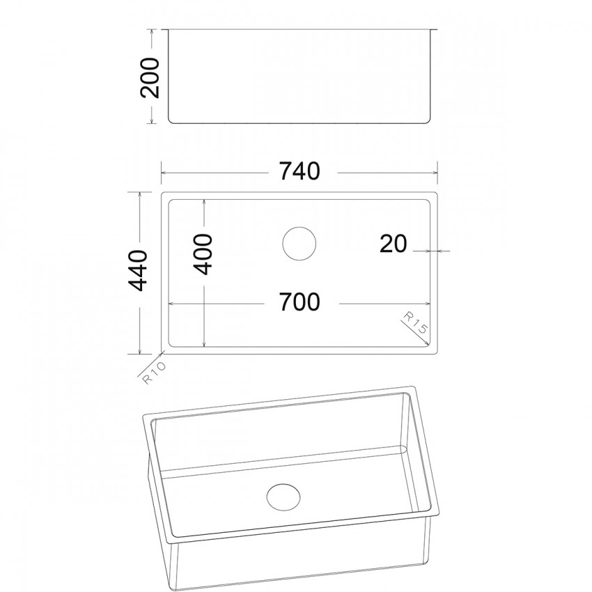 1. Ανοξείδωτος νεροχύτης Υποκαθήμενος με 1 γούρνα χωρίς ποδιά.