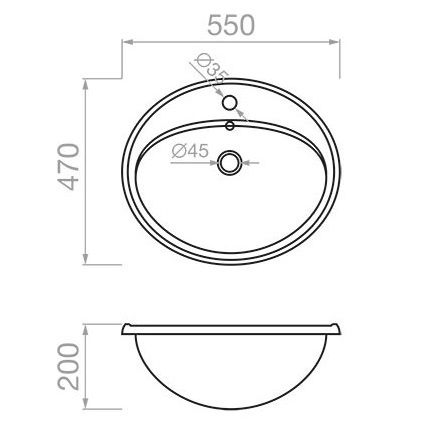 Νιπτήρας ένθετος από υλικό κατασκευής πορσελάνη με διαστάσεις 55 x 47 x 20cm.