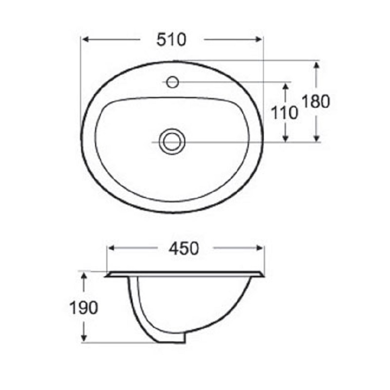 Νιπτήρας μπάνιου με ένθετη τοποθέτηση σε Λευκό φινίρισμα κατασκευασμένο από άριστης ποιότητάς πορσελάνη. Οβάλ Design που θα ταιριάξει μοναδικά σε κάθε μοντέρνο μπάνιο. Έχει Διαστάσεις 50cm (Μήκος) 45cm (Πλάτος) και 19cm (Ολικό Βάθος).