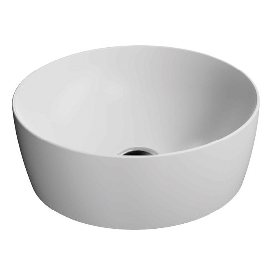 Υπερπολυτελής Νιπτήρας μπάνιου στρόγγυλου σχήματος Επικαθήμενος σε Λευκό Ματ φινίρισμα της Ιταλικής εταιρίας GSI.Το υλικό κατασκευής του είναι άριστης ποιότητάς ατόφια πορσελάνη διπλής επισμάλτωσης Dualglaze.Έχει εξωτερικές διαστάσεις 40cm x 40cm, είναι χωρίς υπερχείλιση και έχει βάθος γούρνας 14cm ενώ χωρίς υπερχείλιση 11.3cm