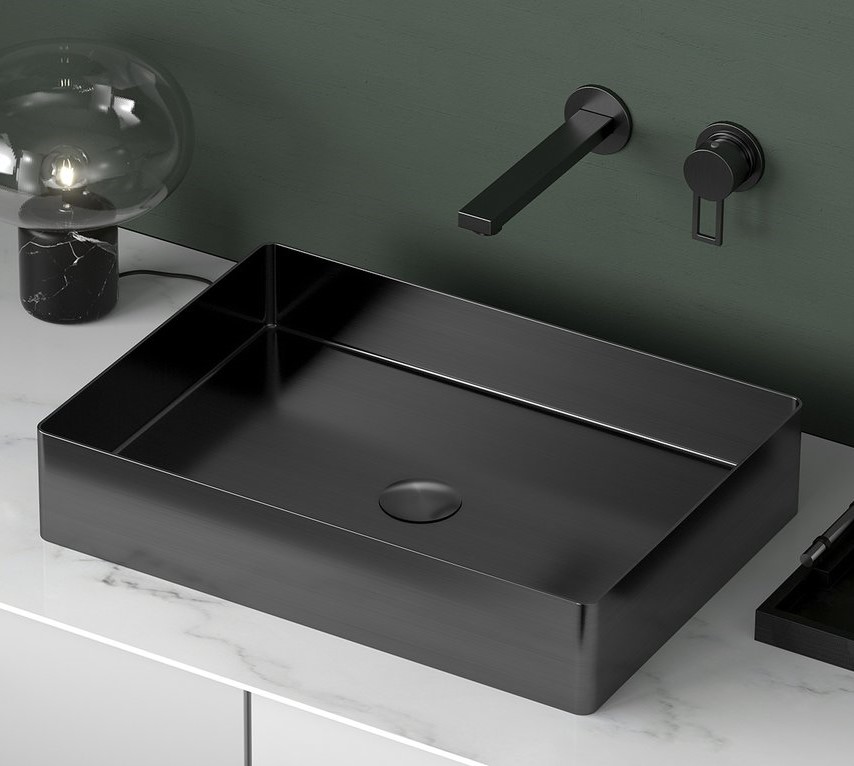 Μια νέα, μοντέρνα, επιβλητική σειρά Νιπτήρων κατασκευασμένοι εξ' ολοκλήρου από άριστης ποιότητας ανοξείδωτο Αντιμαγνητικό ατσάλι 304 με ειδική επεξεργασία PVD σε τελικό επίθεμα φινιρίσματος Gun Metal.Μια ιδιαίτερη πρόταση για το μπάνιο σας που θα το κάνει να μοιάζει ασύγκριτα μοναδικό. Έχει Διαστάσεις 55x38cm με βάθος 10cm.Συνδυάζεται με ψηλές μπαταρίες ή με εντοιχιζόμενες μπαταρίες νιπτήρος.Ο νιπτήρας διαθέτει και την βαλβίδα αποστράγγισης της φωτογραφίας.