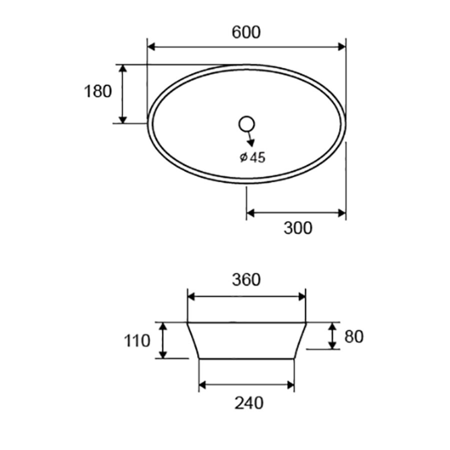 Νιπτήρας επικαθήμενος από υλικό κατασκευής πορσελάνη με διαστάσεις 61 x 36.5 x 11 cm.