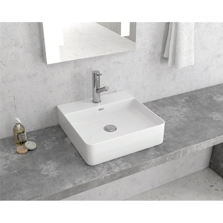 Νιπτήρας επικαθήμενος από υλικό κατασκευής πορσελάνη με διαστάσεις 42 x 42 x 12 cm.