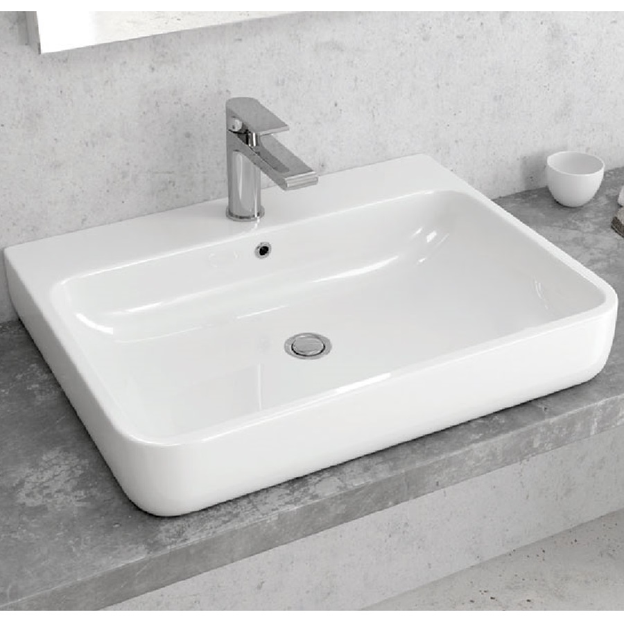 Νιπτήρας επικαθήμενος από υλικό κατασκευής πορσελάνη με διαστάσεις 60 x 45 x 19 cm.