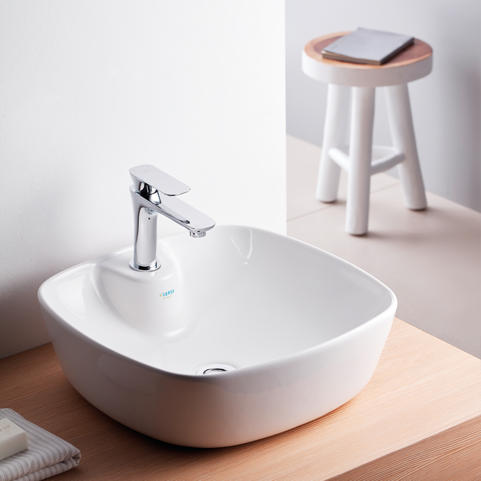 Υπερπολυτελής Νιπτήρας μπάνιου Επικαθήμενος σε Λευκό φινίρισμα της Ιταλικής εταιρίας Serel.Το υλικό κατασκευής του είναι άριστης ποιότητάς ατόφια πορσελάνη. Έχει εξωτερικές διαστάσεις 46cm x 46cm, είναι χωρίς υπερχείλιση και έχει βάθος γούρνας 13cm.Διαθέτει οπή για μπαταρία.