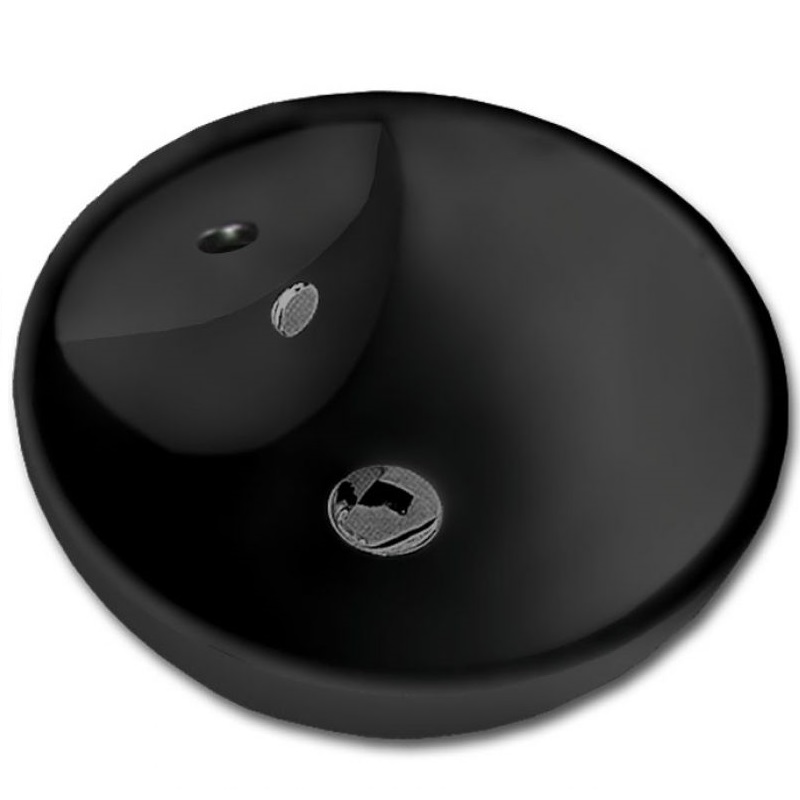 Επικαθήμενος Νιπτήρας μπάνιου σε Μαύρο ματ φινίρισμα κατασκευασμένο από άριστης ποιότητος πορσελάνη.Στρογγυλό Design που θα ταιριάξει μοναδικά σε κάθε μοντέρνο μπάνιο.Έχει Διαστάσεις 45.5cm (Μήκος) 45.5cm (Πλάτος) 17cm (Ύψος) και 9cm (Βάθος).Διαθέτει και Οπή για μπαταρία νιπτήρος.