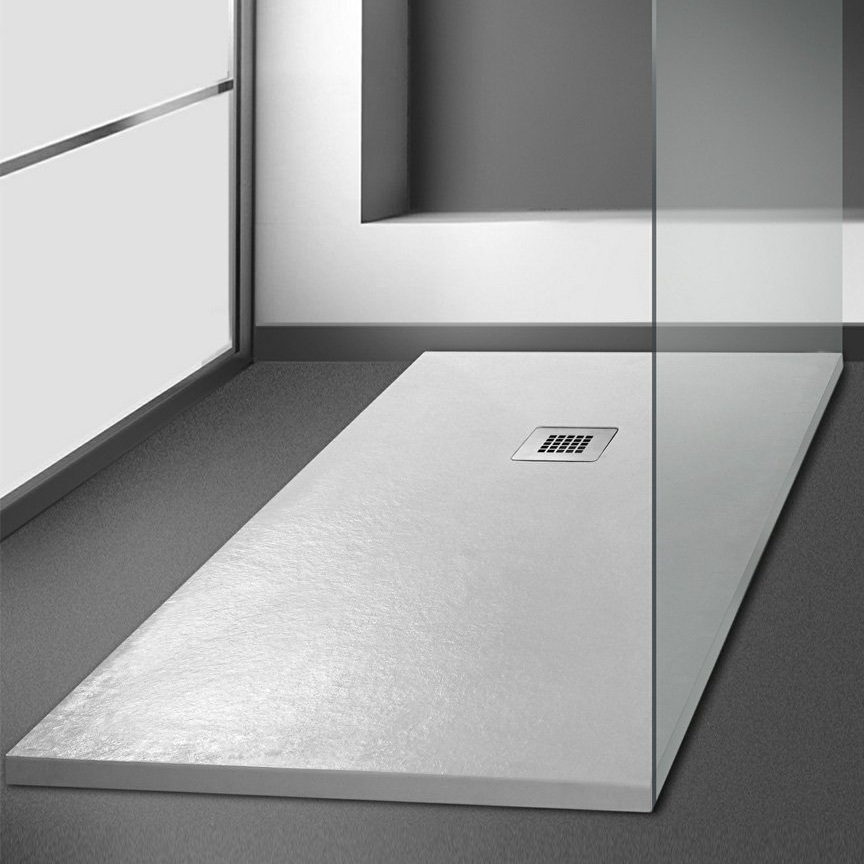 Ορθογώνια Λευκή Ντουζιέρα μπάνιου με Υφή πέτρας. Διατίθεται σε πολλές διαστάσεις για να επιλέξετε. Οι ντουζιέρες Pietra είναι κατασκευασμένες από συνθετικό υλικό υψηλής αντοχής και σκληρότητας. Προσαρμόζεται εύκολα σε κάθε χώρο λόγω της δυνατότητας και σκληρότητας τους της κοπής τους .Συνοδεύεται πάντοτε με inox βαλβίδα αποχέτευσης.