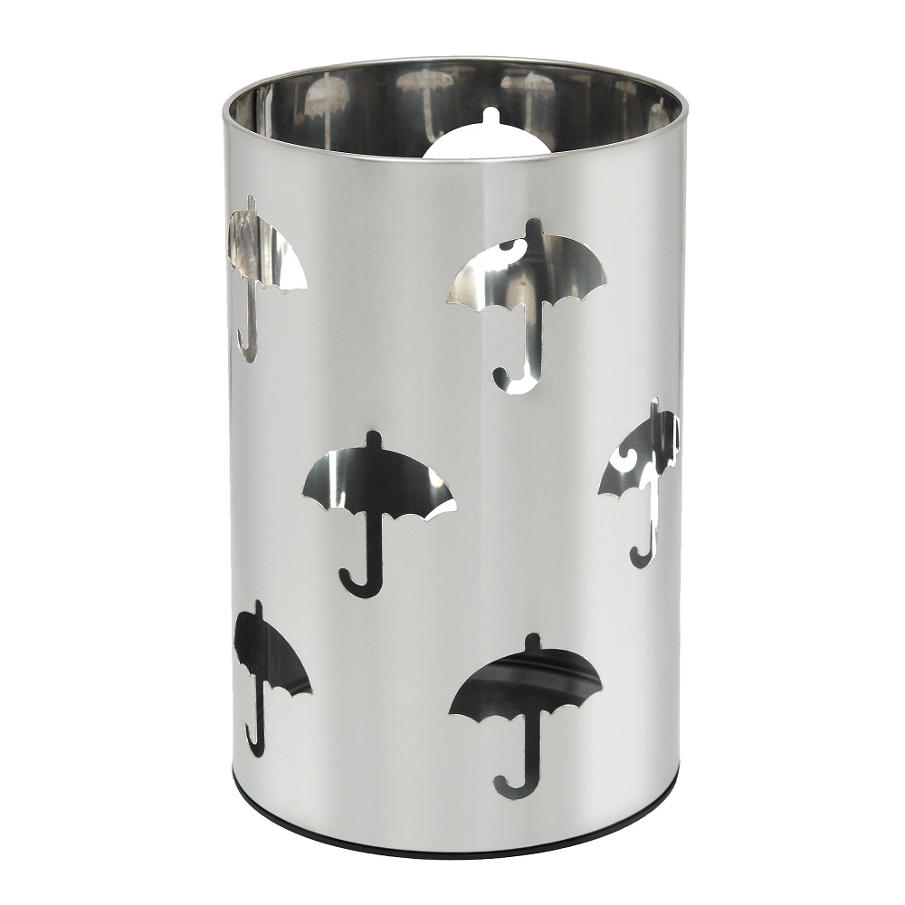 Στρογγυλή ομπρελοθήκη σε μοντέρνο σχέδιο και απόχρωση Inox σατινέ με πλαστικό στεγανό πάτο.Κατασκευασμένη εξ'ολοκλήρου από εξαιρετικής ποιότητας χάλυβα για να τοποθετείτε τις ομπρέλες σας και να είναι πάντα τακτοποιημένες.Διατίθεται σε διαστάσεις 25cm (Διάμετρος-Μήκος) x 44cm (Ύψος).