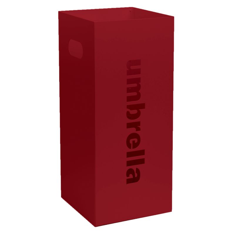 Τετράγωνη μοντέρνα ομπρελοθήκη σε Matt Bordeaux φινίρισμα κατασκευασμένη εξ ολοκλήρου από γαλβανισμένο χάλυβα πάχους 0.7mm.Αμετάβλητη στις αντίξοες καιρικές συνθήκες ιδανική για καθημερινή συνεχή χρήση.Έχει διαστάσεις 50cm (Ολικό Ύψος) και 22cm (Πλάτος).