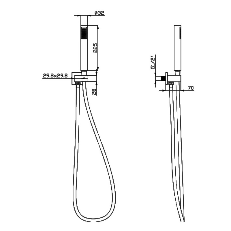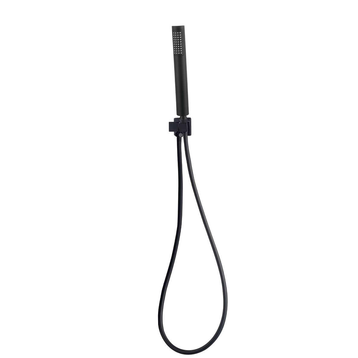 Σετ για σύστημα εντοιχισμού σε Μαύρο Ματ φινίρισμα το οποίο περιλαμβάνει τηλέφωνο χειρός Abs, ορειχάλκινη παροχή ντους με βάση στήριξης καθώς και σπιράλ inox 150cm.