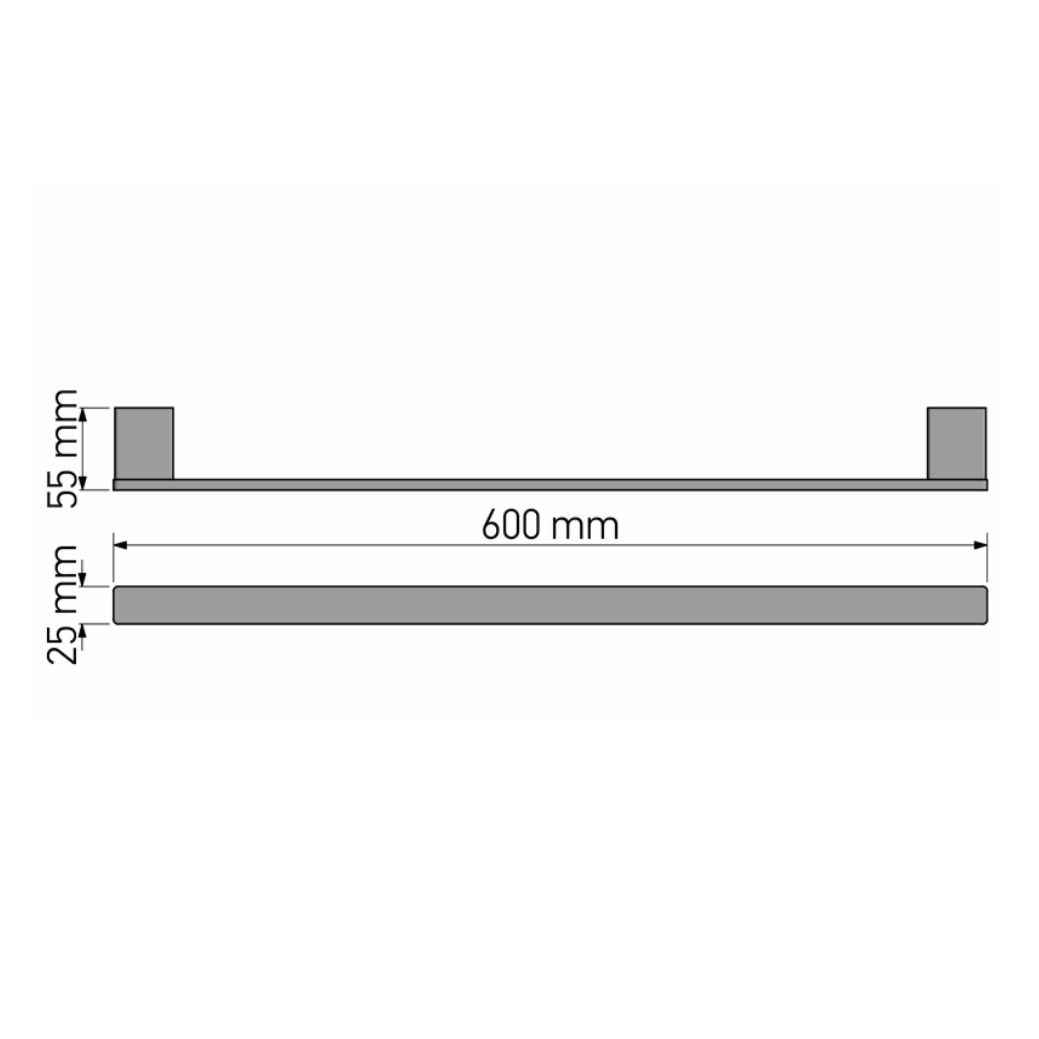 Μια εντυπωσιακή τετράγωνη πετσετοθήκη σε Μαύρο Ματ φινίρισμα, από μια πολυτελή σειρά γραμμικού σχεδιασμού, που ταιριάζει και προσαρμόζεται μοναδικά σε κάθε μοντέρνο μπάνιο. Ιδανική και ενδεδειγμένη για το κρέμασμα μεγάλων πετσετών κυρίως σώματος. Έχει διαστάσεις 60cm (μήκος) x 5.5cm (βάθος) x 2.5cm (πάχος).