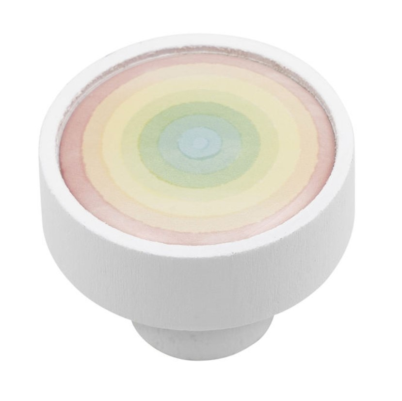 Ξύλινο πομολάκι επίπλου σε Λευκή απόχρωση με Ροζ σχέδιο σε ιδιαίτερο design που θα αναβαθμίσει τα έπιπλα σας. Έχει Διάσταση φ.36 και διαθέτει στο επάνω μέρος αυτοκόλλητη ταινία καουτσούκ.