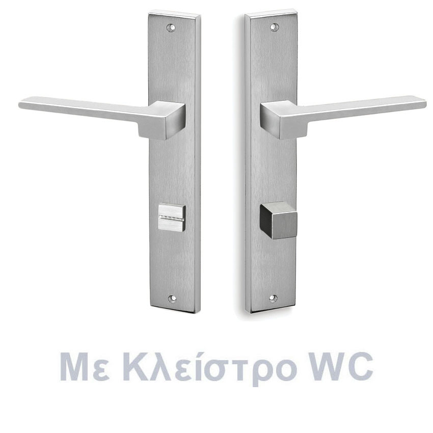 Μία πολύ πρωτότυπη σχεδιαστική καινοτομία, χειρολαβή με πλάκα σε Χρώμιο ματ φινίρισμα με τετράγωνες δυναμικές φόρμες γεωμετρικής έμπνευσής που ταιριάζει άψογα σε κάθε επιφάνεια άλλα και σε οποιοδήποτε ύφος σπιτιού. Διαθέτει μια ιδιαιτέρως εύχρηστη και εργονομική χειρολαβή για πόμολο, γεγονός απαραίτητο στην καθημερινή χρήση μας.