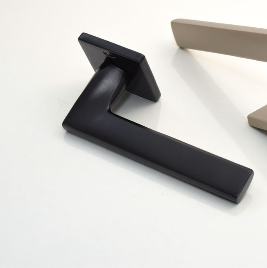 Ένα μοντέρνο και διαχρονικό πόμολο πόρτας με ροζέτα, ιδιαίτερα εύχρηστη χειρολαβή ιδανική για καθημερινή συνεχή χρήση από υλικό κατασκευής 100% αλουμίνιο σε τελικό επίθεμα Μαύρο Ματ. Διατίθεται σε τεμάχιο για εξώπορτες (δεξί ή αριστερό) ή για εσωτερικές πόρτες σε ζευγάρι σε ιδιαίτερα οικονομική τιμή.