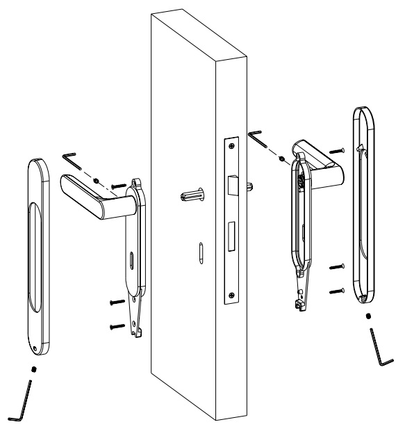 Συσκευασία: Περιλαμβάνει το πόμολο μαζί με τον πίρο σύνδεσης και τις βίδες για προσαρμογή του πόμολου στην πόρτα.