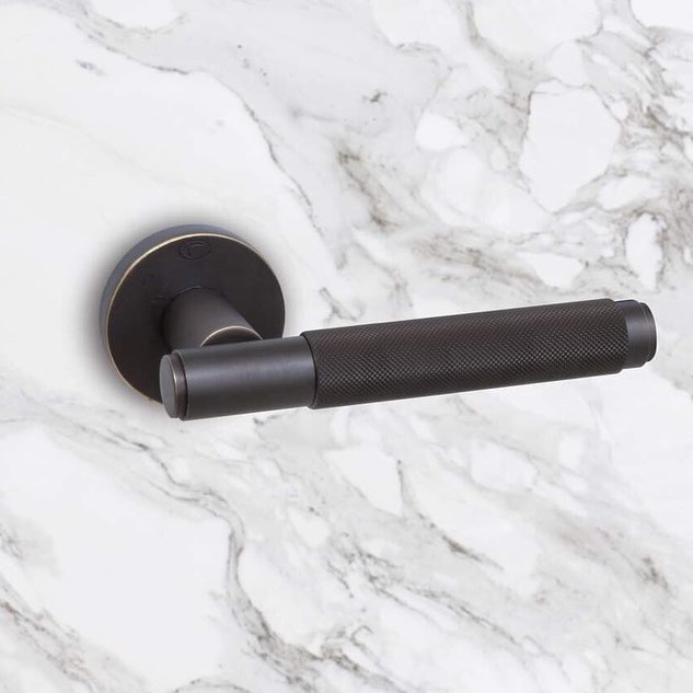 Μια πρωτότυπη εκπληκτική κυλινδρική γεωμετρική φόρμα σε Μπρονζέ ματ φινίρισμα, που συνδυάζει στρογγυλή χειρολαβή πόμολου με μια στρογγυλή ροζέτα στήριξης.Η προσθήκη του κανελάζ στην χειρολαβή του πόμολου αναδεικνύει πλήρως το βιομηχανικό industrial στοιχείο της σειράς αυτής κάνοντας την κάθε πόρτα που τοποθετηθεί να μοιάζει ξεχωριστή.