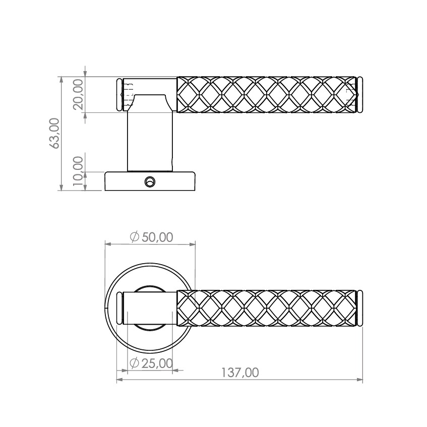 Πόμολα Πόρτας Convex χειρολαβές με ροζέτα 2305 Ματ Ορείχαλκος