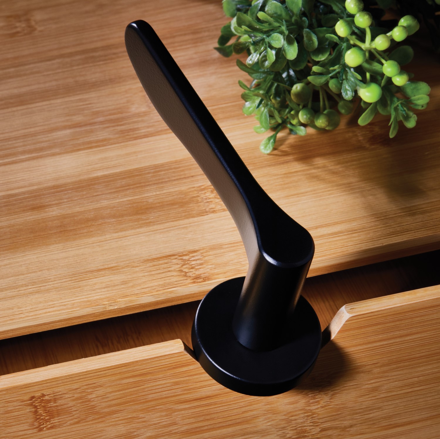 Ένα Πόμολο πόρτας στο εντυπωσιακά φανταχτερό φινίρισμα του Μαύρο Ματ με γεωμετρική σχεδιαστική αντίληψη στις αναλογίες των τμημάτων του. Η πρωτοποριακή του κομψότητα το καθιστούν ιδανική επιλογή για την κάθε πόρτα. Τέλος διαθέτει εύχρηστη χειρολαβή πόμολου που διευκολύνει ακόμα περισσότερο την καθημερινή χρήση μας χωρίς καθόλου εγκοπές ή αιχμηρές γωνίες. Μοναδικό πρωτοποριακό Μαύρο Ματ Soft Touch φινίρισμα που το καθιστά περισσότερο ανθεκτικό στην φθορά στην οξείδωση και στις γραντζουνιές.