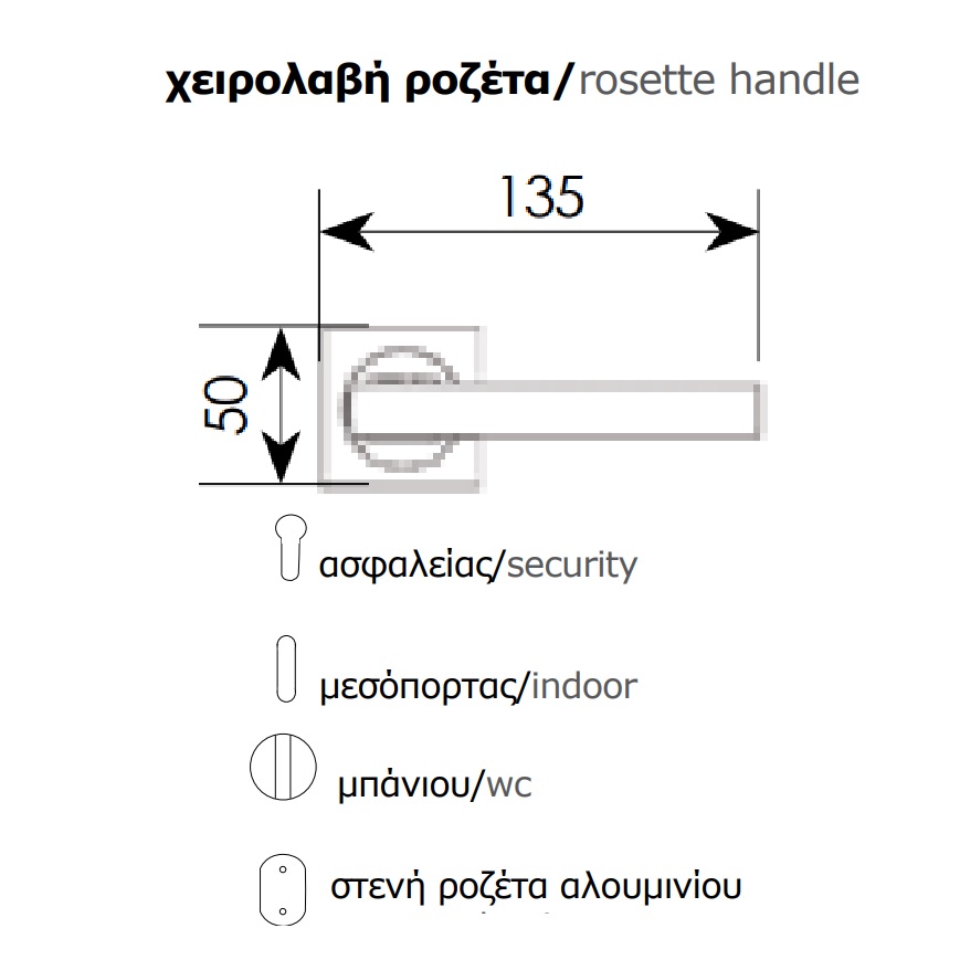 Πόμολα Πόρτας Ζωγομετάλ Χειρολαβές με ροζέτα 346 Νίκελ ματ /Χρώμιο
