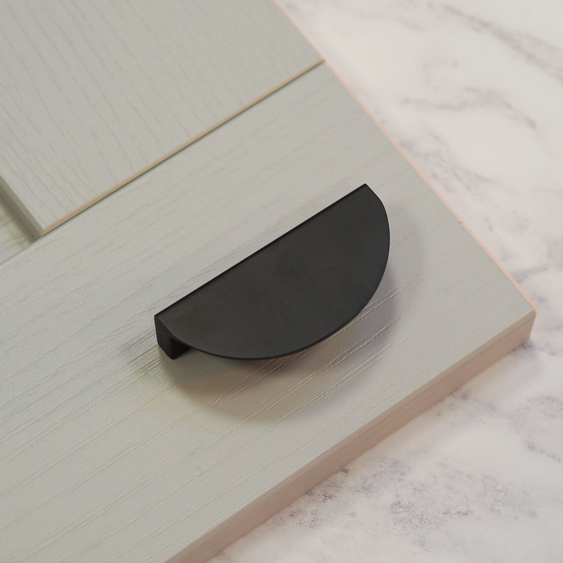 Χούφτα για συρτάρια & ντουλάπια κουζίνας ή ντουλάπας σε Μαύρο ματ φινίρισμα. Μία διαχρονική εύχρηστη επιλογή με ιδιαίτερο και περίτεχνο design σε σχέδιο μισοφέγγαρο που πραγματικά δίνει εντυπωσιακό αισθητικό αποτέλεσμα οπουδήποτε τοποθετηθεί. Διατίθεται σε 3 διαστάσεις για να επιλέξετε με Κέντρα Βίδας 3.2cm ή 6.4cm ή 9.6cm και αντίστοιχα Ολικά Μήκη 7.5cm ή 10cm ή 14cm και Πλάτη 3.2cm ή 4.3cm ή 6.5cm.