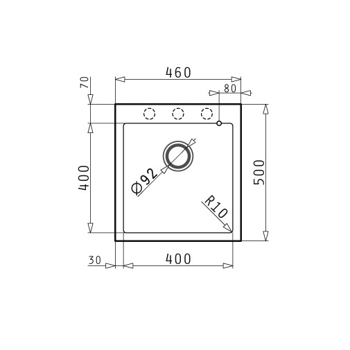 Οι διαστάσεις του Νεροχύτη είναι 46x50cm.Είναι κατασκευασμένος από κρυστάλλους φυσικού γρανίτη (silica) και ρητίνες.Διαθέτει 1 γούρνα και οι διαστάσεις της είναι 40cm x 40cm x 20cm.Διαθέτει 1 βαλβίδα Φ.92 με στρογγυλή υπερχείλιση,1 Σίφον εξοικονόμησης χώρου για 1 γούρνα καθώς και Ερμάριο** μήκους 45cm.Η τοποθέτηση του Νεροχύτη είναι Ένθετη(η περίμετρος του νεροχύτη μετά την εγκατάσταση εμφανίζεται πάνω στην επιφάνεια του πάγκου). Ερμάριο**.Αναφέρεται στον απαιτούμενο χώρο που πρέπει να μείνει κενός, στο ντουλάπι κάτω από το νεροχύτη ώστε κατά την εγκατάσταση του να μπορούν να τοποθετηθούν άνετα,οι γούρνες του.