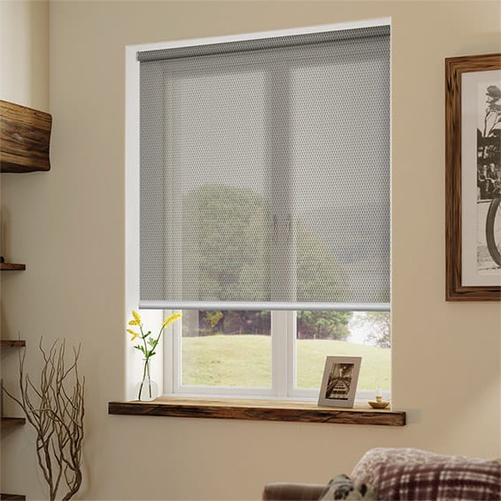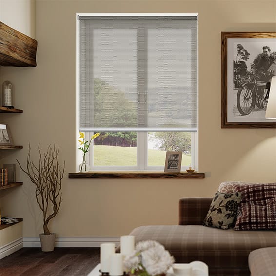 Ένα ρόλερ σκίασης με ένα γκρι , διάτρητο screen ύφασμα με παράγοντα διαφάνειας 3%.Μοναδική επιλογή για να μετατρέψετε ένα χώρο ή ένα δωμάτιο σε άκρως ευάερο και ευήλιο περιβάλλον αφού η διαφάνεια του επιτρέπει την πολύ καλύτερη ανακύκλωση του αέρα. Ένα ύφασμα το οποίο θα μπορούσε να αποτελέσει και ιδανική λύση για μια κουζίνα καθώς δεν απορροφάει καθόλου τις οσμές ενώ είναι συγχρόνως αλέκιαστο και βραδύκαυστο. Είναι κατασκευασμένο από 35% Πολυεστέρα και 65% PVC και είναι Μερικής συσκότισης. Έχει Βάρος: 320 gr/m2 και Πάχος: 0.45mm ενώ είναι άκαυστο και αντιβακτηριδιακό. Η εξωτερική επένδυση με το αλουμίνιο παρέχει την μέγιστη εξοικονόμηση ενέργειας. Η ελάχιστη χρέωση στα Ρόλερ Σκίασης είναι 1 μέτρο (στο πλάτος) x 1 μέτρο (στο ύψος).