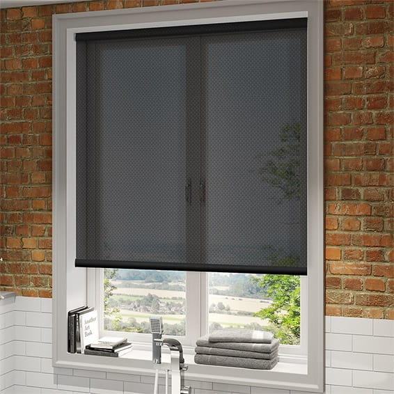 Ένα ρόλερ σκίασης με ένα μαύρο , διάτρητο screen ύφασμα με παράγοντα διαφάνειας 3%.Μοναδική επιλογή για να μετατρέψετε ένα χώρο ή ένα δωμάτιο σε άκρως ευάερο και ευήλιο περιβάλλον αφού η διαφάνεια του επιτρέπει την πολύ καλύτερη ανακύκλωση του αέρα. Ένα ύφασμα το οποίο θα μπορούσε να αποτελέσει και ιδανική λύση για μια κουζίνα καθώς δεν απορροφάει καθόλου τις οσμές ενώ είναι συγχρόνως αλέκιαστο και βραδύκαυστο. Είναι κατασκευασμένο από 35% Πολυεστέρα και 65% PVC και είναι Μερικής συσκότισης. Έχει Βάρος: 320 gr/m2 και Πάχος: 0.45mm ενώ είναι άκαυστο και αντιβακτηριδιακό. Η εξωτερική επένδυση με το αλουμίνιο παρέχει την μέγιστη εξοικονόμηση ενέργειας. Η ελάχιστη χρέωση στα Ρόλερ Σκίασης είναι 1 μέτρο (στο πλάτος) x 1 μέτρο (στο ύψος).