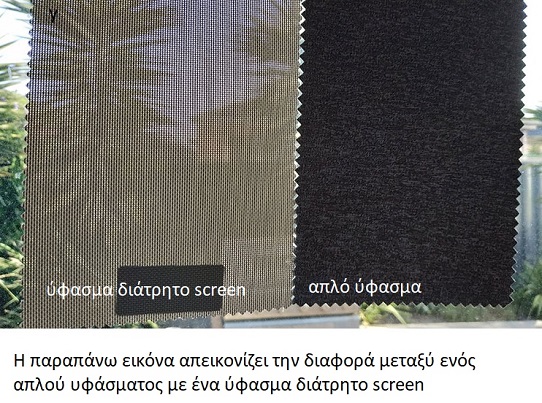 • Τα διάτρητα ρόλερ screen είναι πολυεστερικά υφάσματα μερικής συσκοτίσεως με fiber glass ίνες, που εξασφαλίζουν την ιδιωτικότητα σας αλλά ταυτόχρονα επιτρέπουν την ελεγχόμενη είσοδο του φωτός